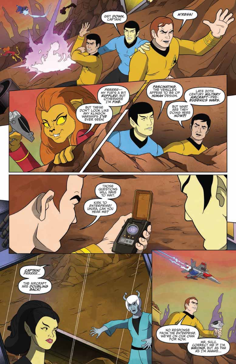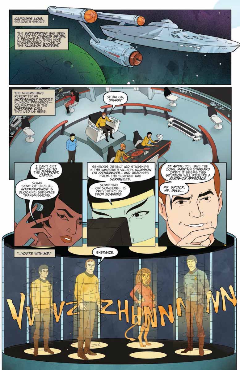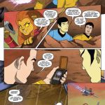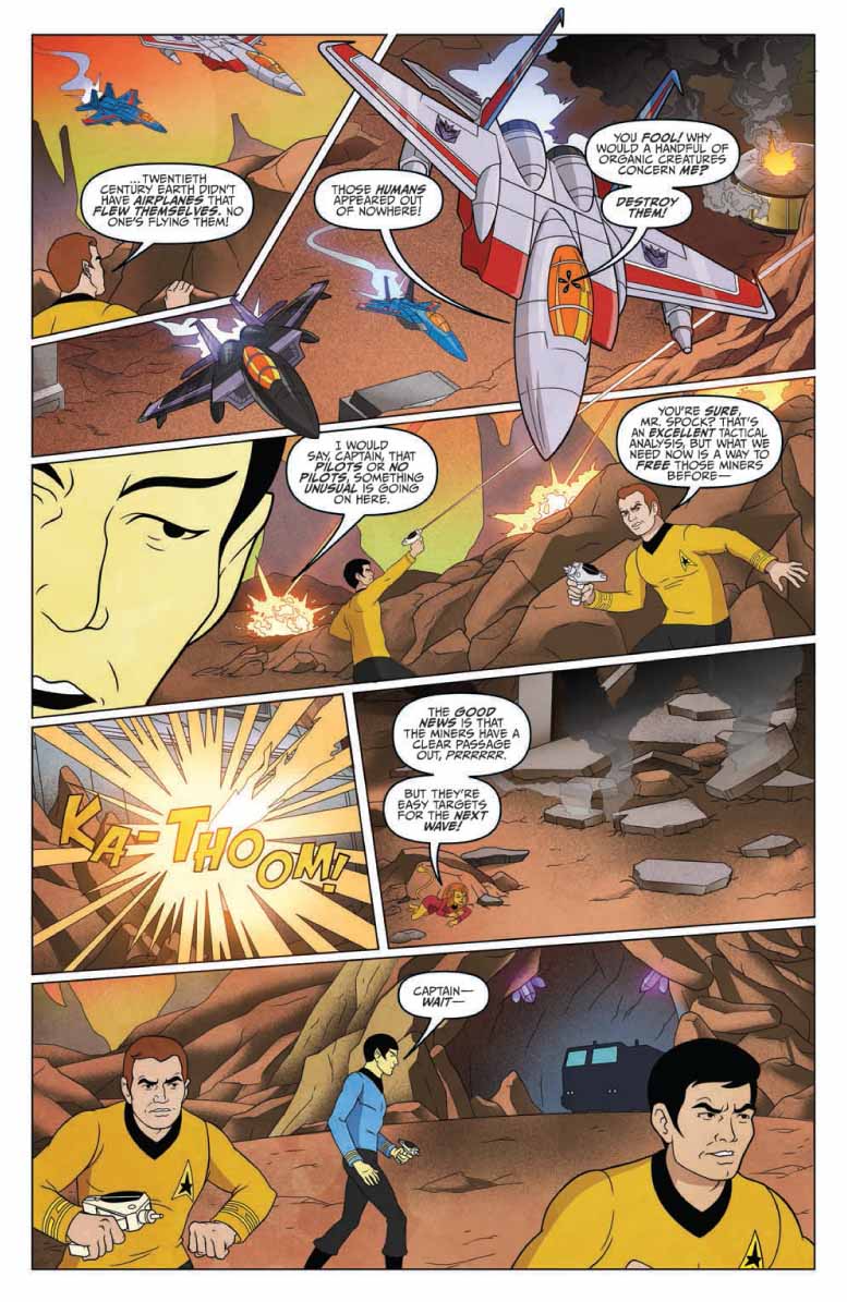 In this issue, “The Transformers ’80s cartoon series meets Star Trek: The Animated Series in a no-holds-barred Saturday morning mash-up for the ages! At the edge of Klingon space, the starship Enterprise finds there’s more to the final frontier than meets the eye, when Kirk and his crew come face to face with the strangest life forms of all: Cybertronians! This unprecedented crossover brings together two of the greatest science fiction universes of all time-in the style of their classic animated series! A five-year mission meets a four-million-year war!”