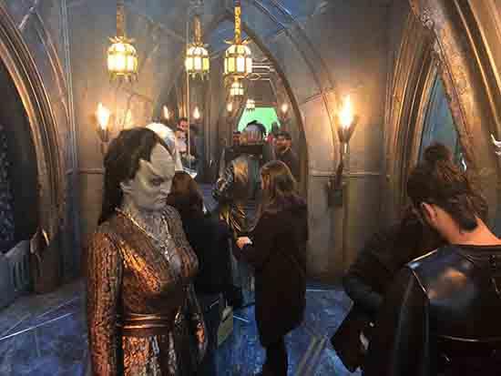 After reading the script and getting started, Osunsanmi scouted the stage for the scene where Burnham and Amanda were walking in the hallway, the transporter room – now the transporter room for the USS Hiawatha – which needed to be transformed back, the bridge, attended a scheduling meeting, was present at a prosthetic test, and got a surprise cake.