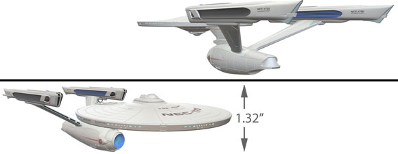 The Star Trek: The Motion Picture USS Enterprise NCC-1701 40th Anniversary Ornament with Light is a Magic Light Christmas tree ornament that lights up when the button on the ornament is pushed. The three LR1 batteries that power the ornament are included.