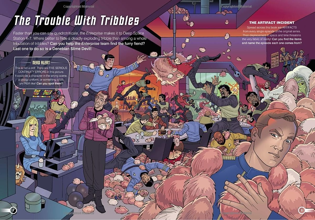 Here is a description of Quibbles with Tribbles: “It’s a puzzle book, Jim, but not as we know it. This is no conventional ‘search-and-find.’ Each of its detailed, full-color pages is packed with out-of-context items and cosmic continuity errors that only a true fan can spot. It would be illogical to resist this challenge, when the accuracy of the whole Trek universe is at stake.