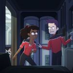 In Second Contact, “Ensign Tendi has her first day of work on Starfleet’s U.S.S. Cerritos, where she meets fellow support crew members, Ensigns Mariner, Boimler and Rutherford. Meanwhile, Boimler is tasked with a secret special assignment and Rutherford attempts to keep his dating life intact while a sci-fi disaster strikes the ship.”