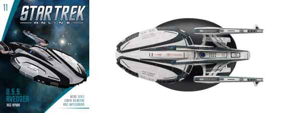 The third ship comes from the Star Trek Online game. The USS Avenger is “An agile vessel available to Starfleet players in Star Trek Online. The Avenger-Class Battlecruiser was intended to compete with the smaller, more nimble vessels fielded by the Klingon Defense Force. Intended primarily for war rather than exploration, the Avenger-class sparked a minor arms race on its debut.”