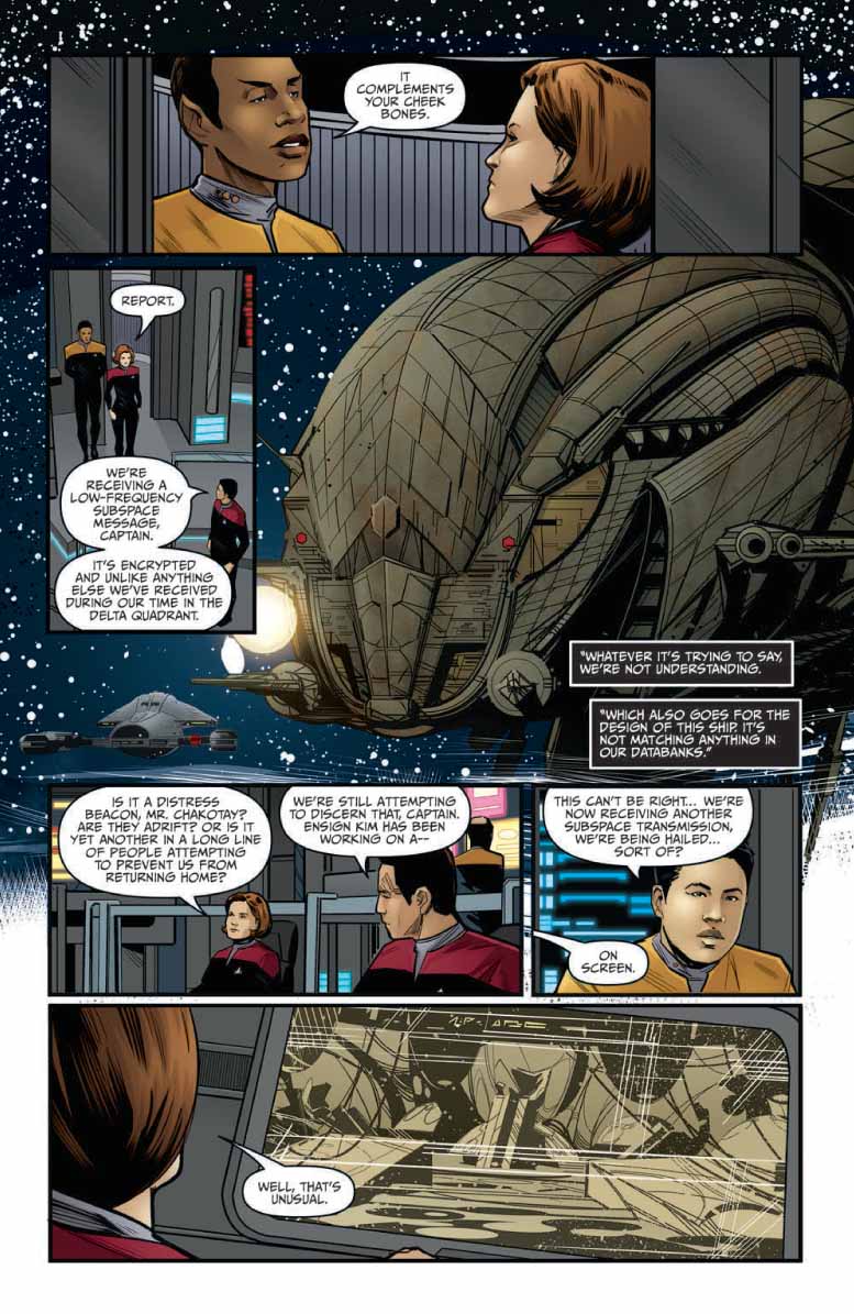 In Seven’s Reckoning #1, “After Voyager encounters a damaged ship deep in the Delta quadrant, what at first seems to be a simple repair mission becomes much deeper as Seven of Nine becomes involved in an ancient conflict that will put her newfound humanity to the test.”