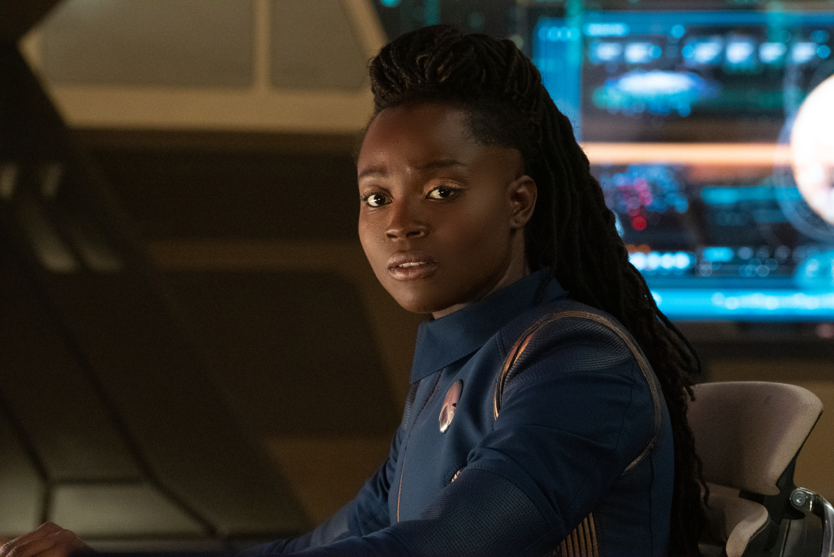 In this eighth episode of Season Three, “Burnham and the U.S.S. Discovery crew travel to Book’s home planet to help rescue it from Osyraa, the formidable leader of the Emerald Chain. Meanwhile, Stamets and Adira continue their search for valuable information on the origin of the Burn.”