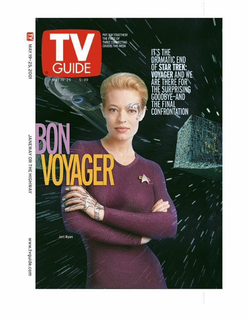 The Voyager cast were interviewed on the set of the series finale, 'Endgame,' about their thoughts on the end of the show. To commemorate the end of the series TV Guide will be publishing three special edition covers of the magazine showing the Voyager stars. Previews of three of the covers can be found below.