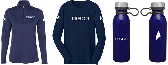 The “Disco” apparel includes a Star Trek: Discovery Disco Women’s Quarter-Zip Lightweight Pullover, which costs $69.95 and comes in sizes small through XX-Large. The man’s version of the quarter-zip lightweight pullover comes in sizes small through XXX-Large.