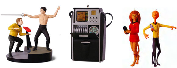 An ornament to be released in October should be of interest to TOS fans. It is an all-metal production of the USS Enterprise. The Enterprise ornament will make its debut on October 6 and will cost $39.99.