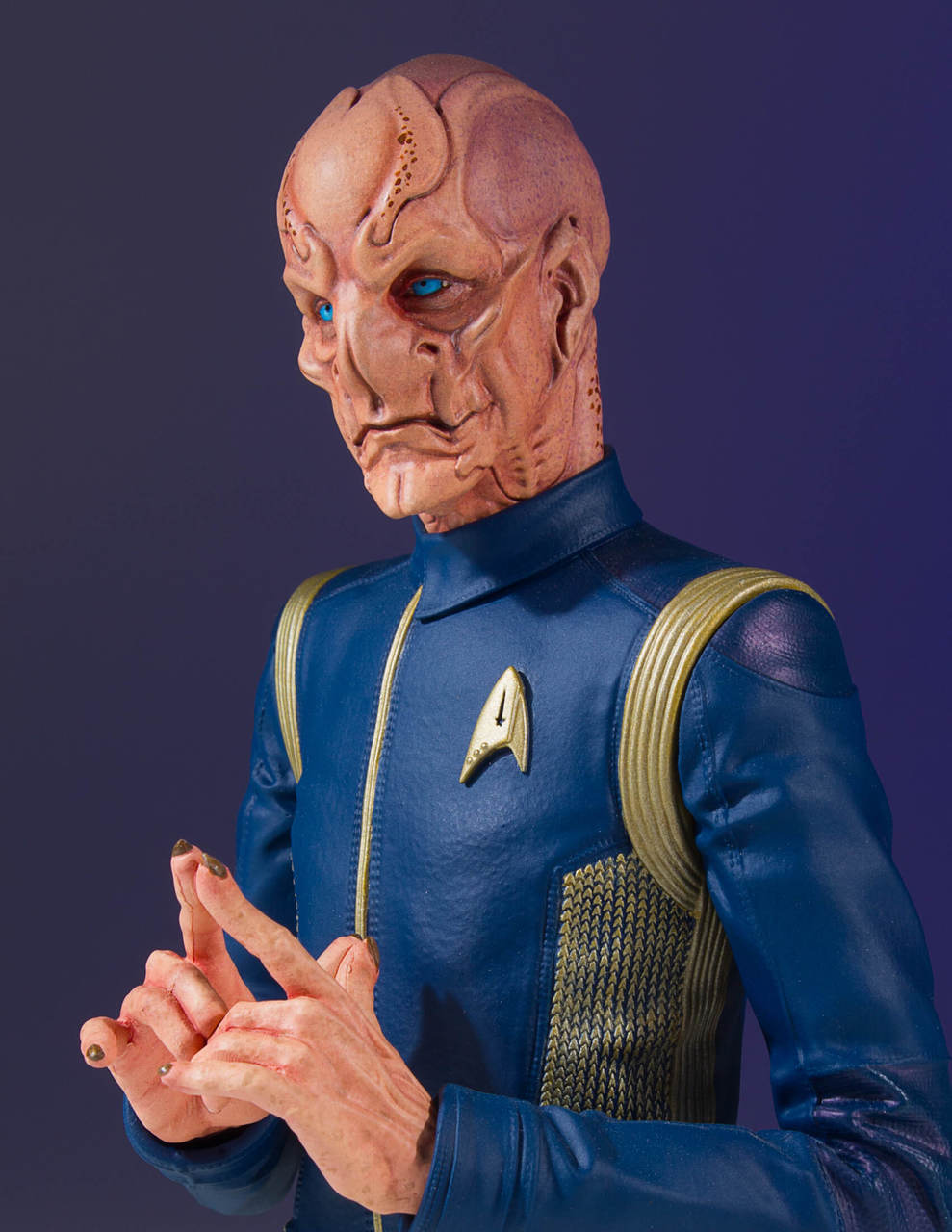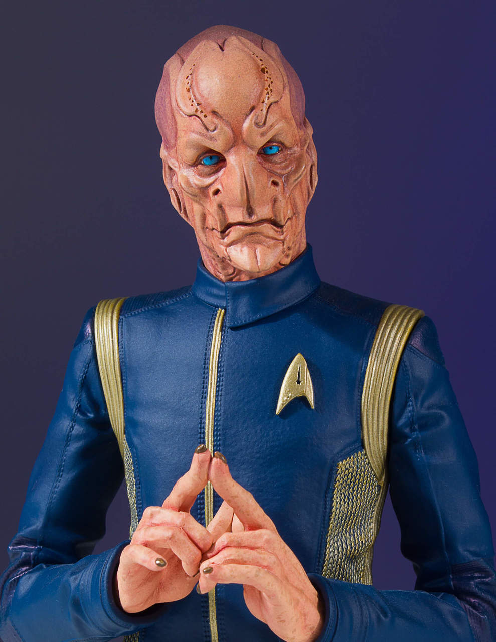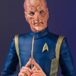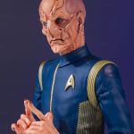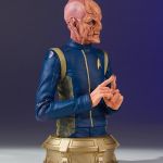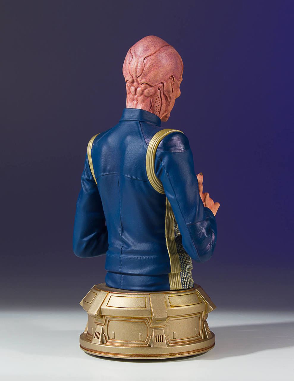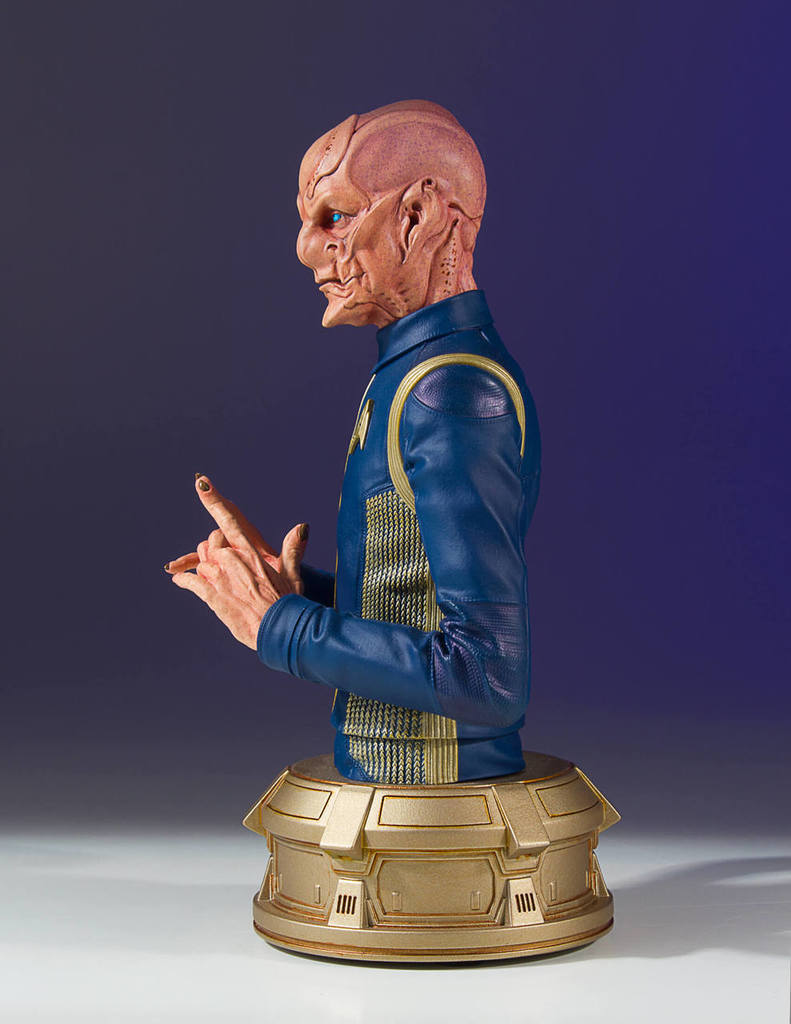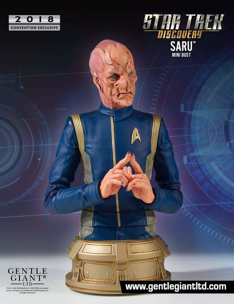 Gentle Giant artists worked with production to use original concept models and authentic production files to accurately match and recreate the prosthetic makeup appliance worn by actor Doug Jones for this bold new mini bust. This limited edition convention exclusive mini bust of first officer Lt. Saru is hand-cast, hand-painted and hand-numbered with a limited edition Certificate of Authenticity.”