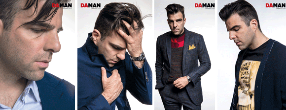 Zachary Quinto graces the cover of the current (June-July) issue of DA MAN magazine.