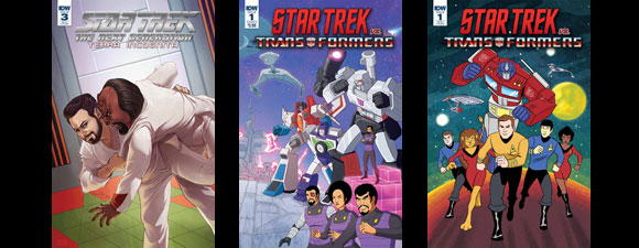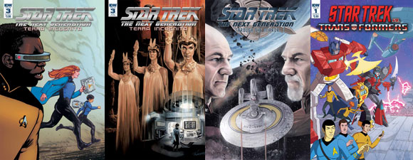 The comics include: Star Trek: The Next Generation: Terra Incognita #3, Star Trek: The Next Generation: Through the Mirror, and Star Trek vs. Transformers #1.