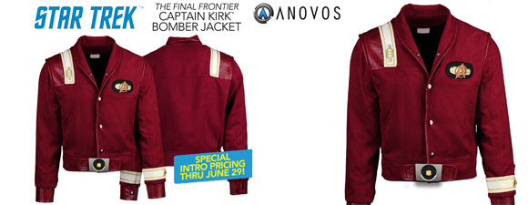 ANOVOS has introduced a new piece of Trek-themed apparel, a Captain Kirk Bomber Jacket.