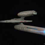 The USS Kelvin, Starfleet registry NX-0514, is noted for its deadly encounter with the Romulan ship Narada, which emerged from a black hole created by the detonation of a red matter device. In the ensuing combat, Lieutenant Commander George Kirk assumed command of the ship, sacrificing himself and the Kelvin by ramming the Narada at full speed, effectively disabling the enemy craft and allowing remaining crew members, including Kirk’s pregnant wife, Winona, to escape via shuttlecraft. It is notable that George Kirk’s son, James Tiberius Kirk, who would grow up to become the famous captain of the legendary USS Enterprise, was born during the escape.