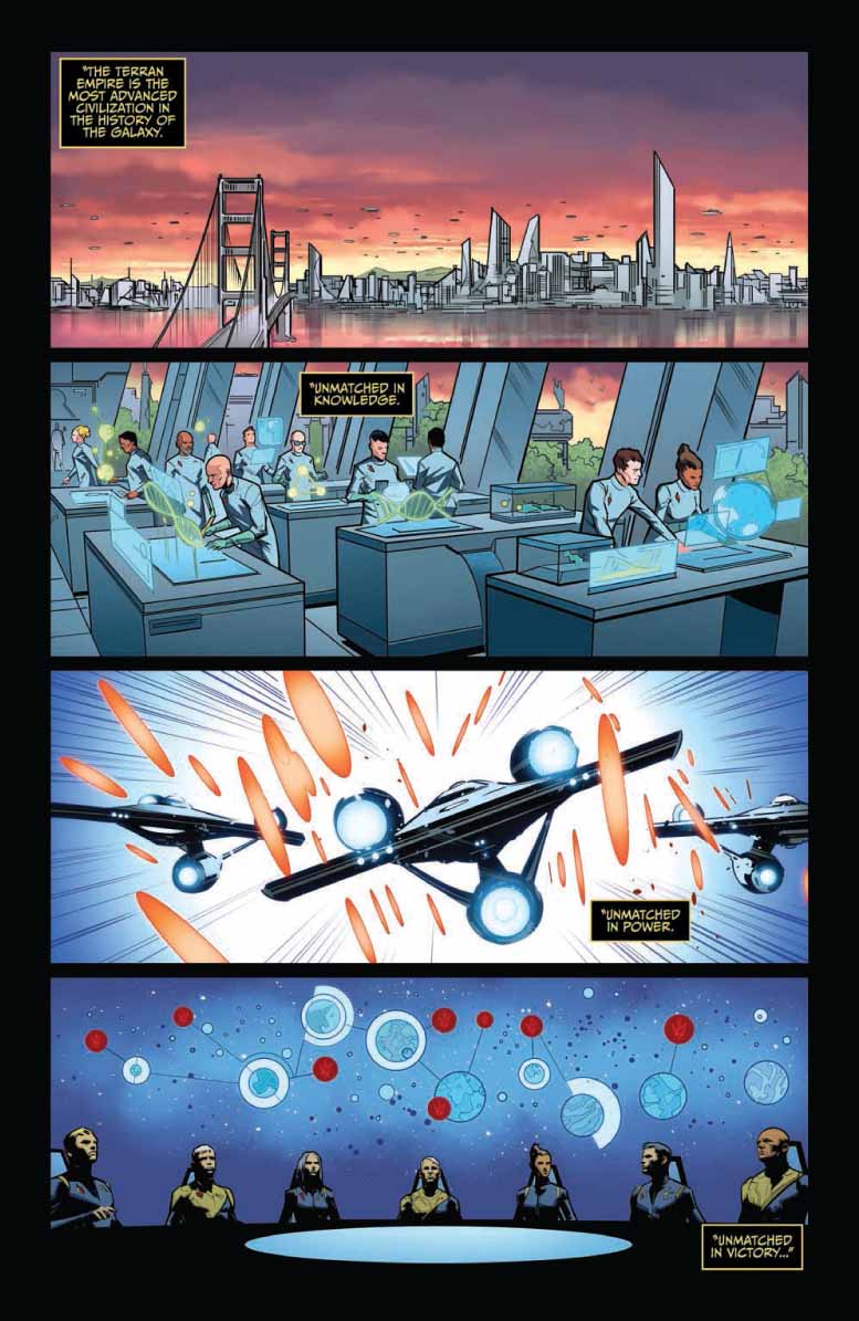 In Star Trek: Discovery: Succession #4, “In the Mirror Universe, the heroic characters you thought you knew care only for power and glory. In this, the final issue of Succession, see Michael Burnham in the fight of her life! ”