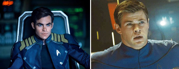 The actors are Chris Pine (Captain Kirk) and Chris Hemsworth (Kirk’s father).