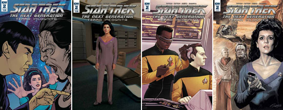 In Terra Incognita #2, “when a routine diplomatic mission takes a catastrophic turn, Counselor Deanna Troi is the only thing that stands between the Federation and the prospect of galactic war!”
