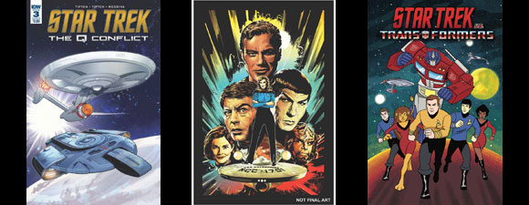 The comics include: Star Trek: The Q Conflict #3, Star Trek Vs. Transformers, and Star Trek: Waypoint Special 2019.