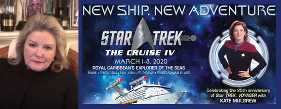 “Star Trek: The Cruise IV, the most extraordinary Star Trek adventure in the universe, is excited to announce its 2020 mission plan! With Kate Mulgrew at the helm, Star Trek: The Cruise IV will set sail in 2020 for an extended voyage on a new ship with new adventures in celebration of the 25th anniversary of Star Trek: Voyager.