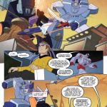 In Transformers #4, “With the Enterprise disabled by the Klingon-Decepticon alliance, things look dire for Spock, Optimus Prime, and the landing team. But with the Autobots’ help, can Captain Kirk come up with a solution to save the day from a massive Cybertronian threat?”