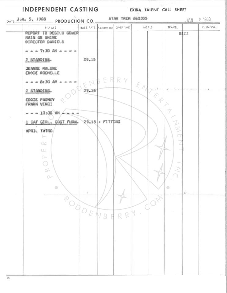 The Trek Files recently found some of the documents for Assignment: Earth, and one of those documents gave the name of the actress. The name was found on the “Extra Talent Call Sheet” and The Trek Files contacted the actress, who confirmed that she had played the role and agreed to appear on today’s The Trek Files.