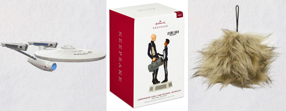The three available now include the Star Trek: The Motion Picture USS Enterprise NCC-1701 40th Anniversary Ornament with Light, the Star Trek Tribble Fabric Ornament with Sound and Motion, and the Star Trek: Discovery Commander Saru and Michael Burnham Ornament with Sound.