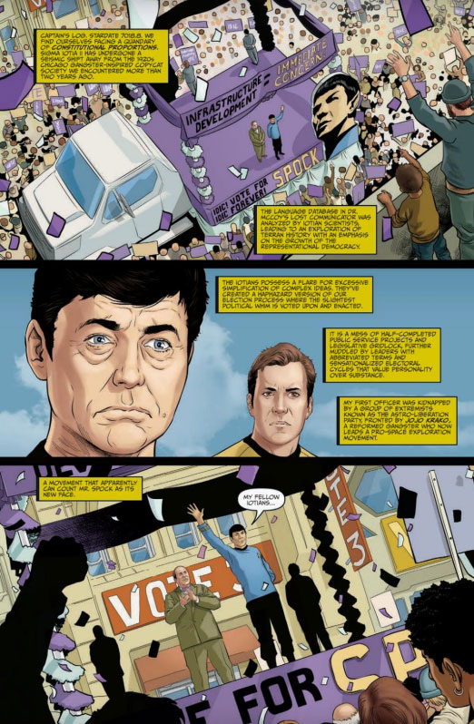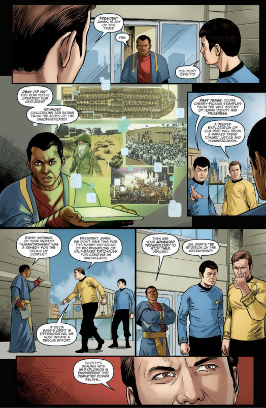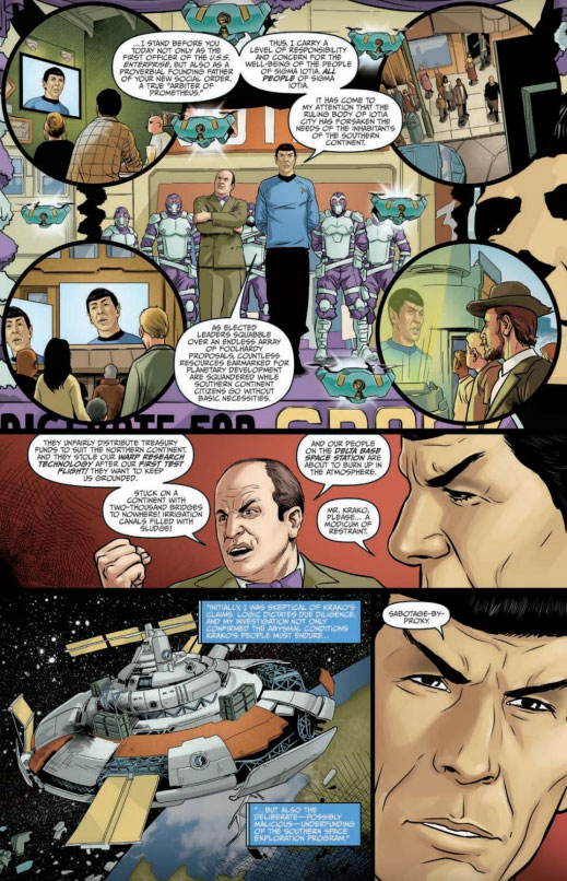 Here is a description of the story: “With the situation on Sigma Iotia II quickly unraveling, it’s up to Kirk and Bones to stop a dangerous group of radicals from unleashing a space/time fissure that could destroy the planet.