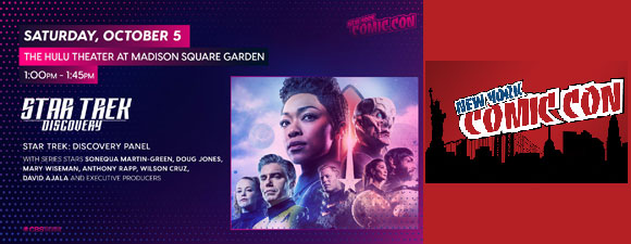The Star Trek: Discovery part of the panel, which takes place from 1:00 PM-1:45 PM at the Hulu Theater at Madison Square Garden, will feature Sonequa Martin-Green, Doug Jones, Mary Wiseman, Anthony Rapp, Wilson Cruz, David Ajala (Booker) and the executive producers of the show.