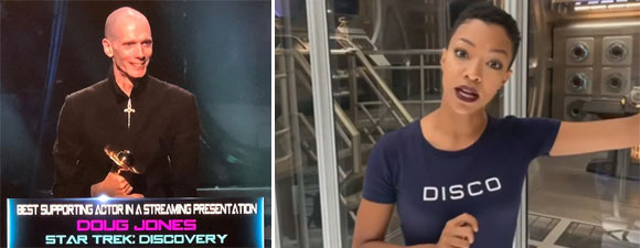 And Doug Jones was the recipient for the Saturn in the Best Supporting Actor in Streaming Presentation category. His competitors included two of his fellow Discovery actors: Wilson Cruz and Ethan Peck, as well as Michiel Huisman, Timothy Hutton, Maxwell Jenkins, and Michael Sheen.