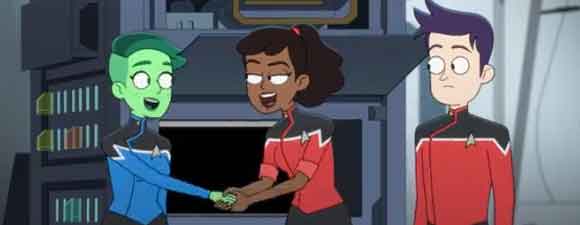 In the clip from Second Contact, Ensign Tendi Meets Mariner and Brad Boimler for the first time.