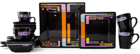 An interesting gift idea for the Next Generation fan is a dinnerware set from Robe Factory that is based on The Next Generation‘s LCARS Interface.