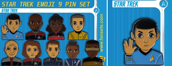 Sold as a set, or individually, the Star Trek Emoji 9 Pin Set include Spock, La Forge, Sisko, Janeway, Archer, Burnham, Picard, Mariner, and Pike.
