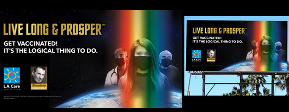 “Dare I say, it was the logical thing to do,” said John Baackes, L.A. Care CEO. “We were honored to be approached by the Nimoy family after they saw our billboards showing masked individuals. Leonard Nimoy and the beloved phrase Live Long and Prosper will forever hold a place in our hearts, and we know they can help us get out the word about some very important steps that will help us all protect ourselves and our loved ones.”