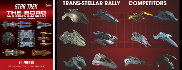 Each ship includes data on that ship, where the ship was seen, and pictures of those ships. For the Borg section, Borg vessels were seen in Trek shows from The Next Generation through Star Trek: Enterprise. For the Delta Quadrant ships, all were seen in Star Trek: Voyager.