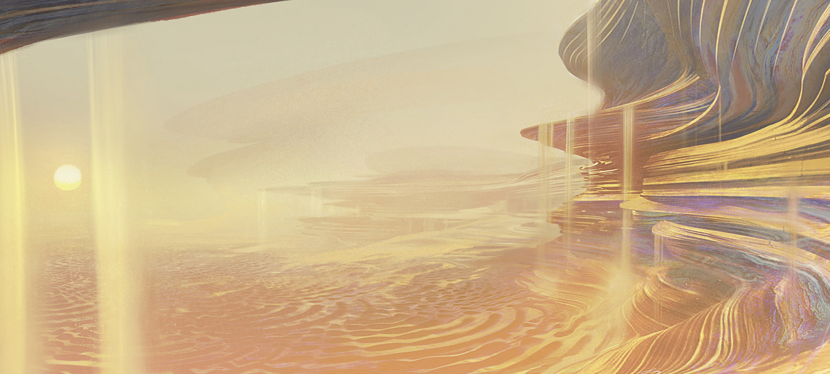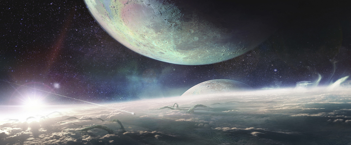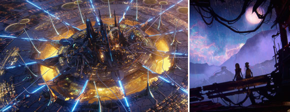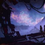 The photos show alien landscapes and two of the characters are sitting in one of the photos. The characters appear to be Gwynn (Ella Purnell) and Dal (Brett Gray).