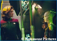 The Jeri Ryan Homepage ended the speculation about whether Ryan would be appearing in Voyager's final season, by confirming that the actress had signed a new contract. The site also revealed that the actress had "recently spent three days back in full Borg costume and make-up for an upcoming episode, though she didn't explain the reason." Of course, with the benefit of hindsight, we know that she was probably involved in filming for 'Survival Instinct.'