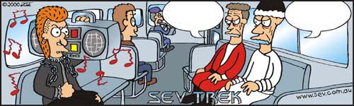 This week spoofs the scene from Sev Trek IV where Spook and Quirk encounter a head banging 20th Century punk. Sevnote - you can write a punchline for either Spook and/or Quirk (and in any order).