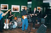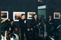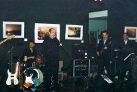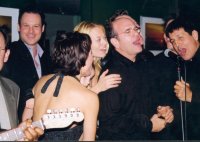 On the 16th of December, 2000, Paramount organised a special Christmas party for the cast of 'Star Trek: Voyager'. At the event, live music and entertainment was provided by Neil Norman and his Cosmic Orchestra, well-known for convention appearances and their many SF-themed CDs, published by GNP Crescendo. Courtesy of Neil Norman, below you will find seven unique photos from the party, showing the cast members getting down with the band and just generally having a good time (click on the images for a larger version):