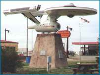 Vulcan lies about 120 kilometers south east of Calgary, and is a town that likes to take advantage of its obvious Star Trek parallels. The large starship statue pictured above - the FX6-1995-A Constitution class - is situated near the main entrance to the town. Its base features plaques greeting visitors to the town in English, Vulcan and Klingon. We are reliably informed that the residents do not have pointed ears.